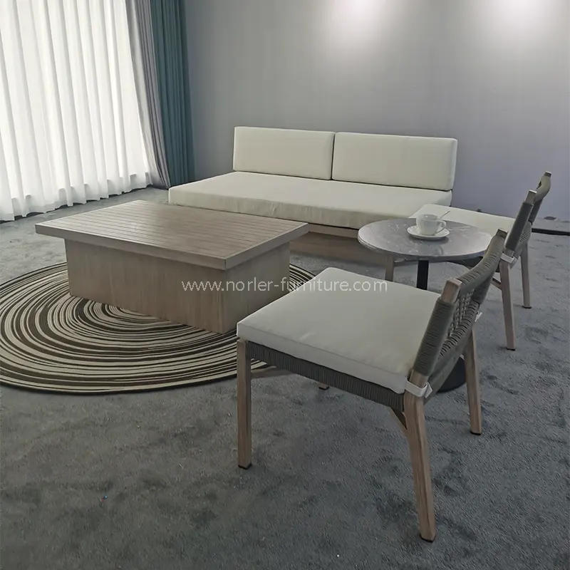 नॉरलर चायना आउटडोअर स्क्वेअर कॉफी टेबल बाल्कनी सेटमध्ये गंज-प्रतिरोधक अ‍ॅल्युमिनियम मिश्र धातुची फ्रेम आहे, ज्यामुळे ते हलके, बळकट आणि टिकाऊ होते. समाविष्ट केलेले वॉटरप्रूफ आणि सूर्य-संरक्षणात्मक चकत्या आरामदायक, श्वास घेण्यायोग्य आणि स्वच्छ करणे सोपे आहे. साध्या आणि मोहक डिझाइनमुळे बाल्कनी, अंगण, बाग आणि टेरेस यासह विविध प्रकारच्या मैदानी जागांसाठी योग्य बनते, ज्यामुळे आपल्याला कोणत्याही वेळी आरामात कॉफी ब्रेकचा आनंद घेता येतो.